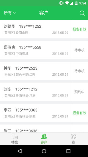2.客户管理:客户报备、带看、成交等功能可以在线跟踪,智能管理;
