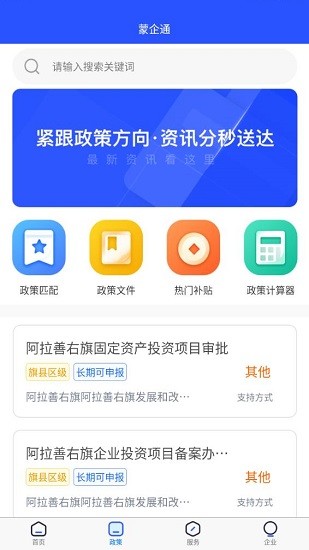 蒙企通app可以查询到最新的资讯,帮助企业能够更加全面的了解国家政策,这里每日都会有全新的资讯推荐,让用户能够在线了解到最实用的政策信息,并且这里有超多惠企的资讯,让每一个中小企业都能得到政策的保护。