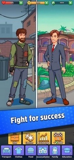 在这款游戏中你将成为一名乞丐,梦想是成为一名百万富翁,从乞讨开始,没有任何成本的开启游戏,开始您的第一份工作,并节省在游戏中经营自己的闲置业务的费用,尝试不同的工作,计划您的经济商业游戏策略,最终发展一个闲置的金融帝国,走上街头致富,成为亿万富翁大亨,并证明无家可归者也能发家致富!