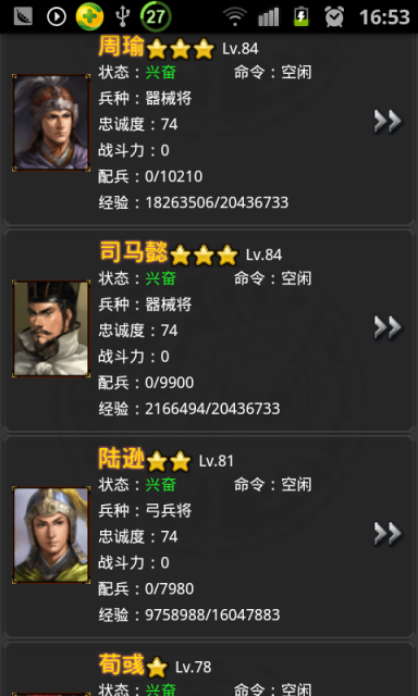 酒馆内会显示可招募的武将列表,友友可以从中选择自己喜欢的招募到麾下.