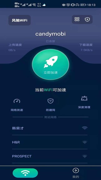 风驰wifi软件是一款保护上网安全、增强WiFi性能的管理工具。无论身处何处,风驰wifi软件都能帮您随时随地免费连接WiFi,帮您降低延迟,提高网络稳定性,是您联网的好帮手。