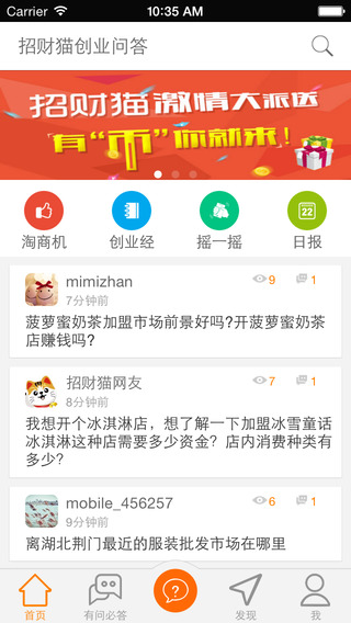 招财猫创业问答iPhone版是当前国内最具影响力的专业创业问答平台,主要为人们掌握最新创业一系列动态和创业加盟项目,让你在你的创业道路上走的更远,为想创业者寻求商机,还等什么赶紧下载吧!