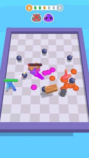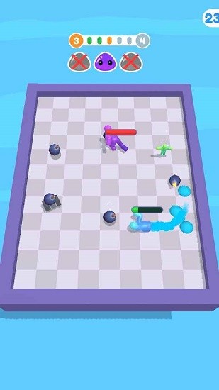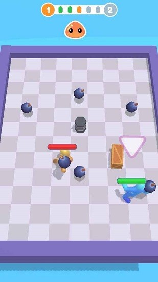 炸弹果冻人(Blob Bomber)是一款休闲对抗类的手机游戏,你在游戏中将操控果冻人来淘汰敌人,你的手段就是捡取地上的炸弹,将它丢向敌人,不过一定要注意走位不要自己把自己给炸到了,同时还要注意敌人丢过来的炸弹,游戏玩起来特别的上头,根本停不下来,你还在等什么呢,快点来下载玩玩吧!