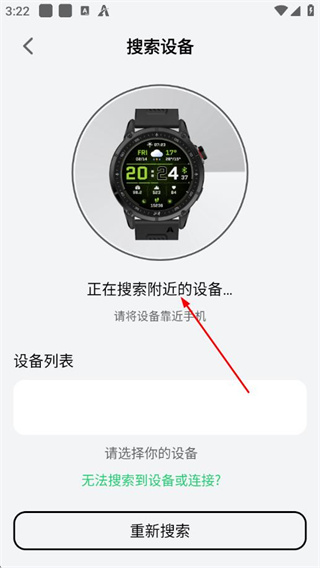 3、将手表靠近手机,等待APP搜索到设备后,选择对应的设备完成添加绑定。