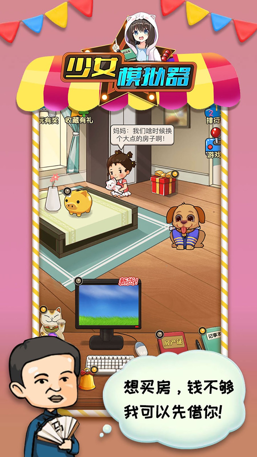 《少女模拟器》是一款打磨精良的养成模拟类游戏,需要不断的用摆摊赚钱去培养自己的女儿,加之大量的手绘场景和人物,让玩家能够在游戏中充分体会到萌娃养成与轻松赚钱买房的乐趣。“家中网上进货”,傍晚开始摆摊,既有时间照顾女儿又能赚钱养家,何乐而不为呢。