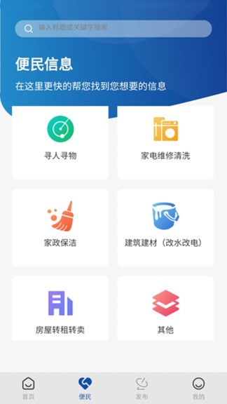 一款生活便民服务软件,让人们的生活可以变得更加方便,很多时候人们不用出门就可以办理一些要紧的事物,待在家中就可以发布、查看求职、招聘信息。