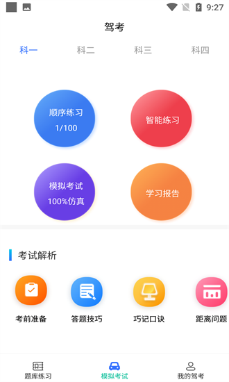 3、完成参照驾考真实科目考试题库所设计的模拟考试,用户可以在这里锻炼自己的心态和知识面