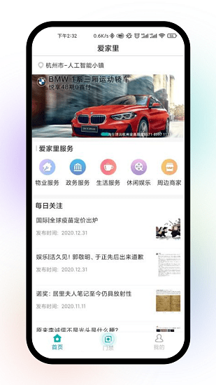 爱家里,让居家生活更幸福。用户下载app注册之后就会定位当前位置,为您锁定附近小区,选择小区、楼栋、门号之后绑定住户信息就能入驻平台了,在系统中录入门锁信息,审核通过之后就能实现用手机开关门。app上还会为住户推送很多城市资讯,供您闲暇时候阅读,了解本地生活。