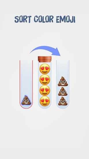 表情排序需要将所有相同的表情放入同一根试管或者将所有打乱的表情重新排序就可以了。游戏画面简约,画风非常可爱,在这里你能够看到各种各样的小表情,非常的有意思,并且操作很简单,轻轻松松就能上手完成挑战,没有什么难度哦,非常适合用来打发休闲时光,欢迎有感兴趣的小伙伴们快来下载体验吧!