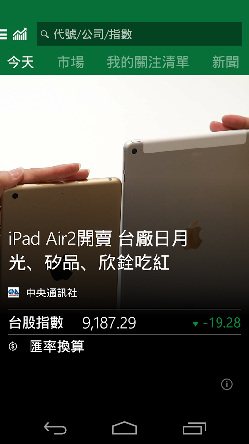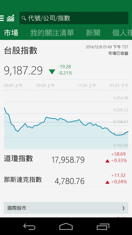 追踪全球主要指数,包括 TSE丶NASDAQ丶NYSE丶Dow Jones丶S&P 500丶DAX丶FTSE 100丶NIKKEI 225 等。此外,亦可追踪汇率与商品价格。
