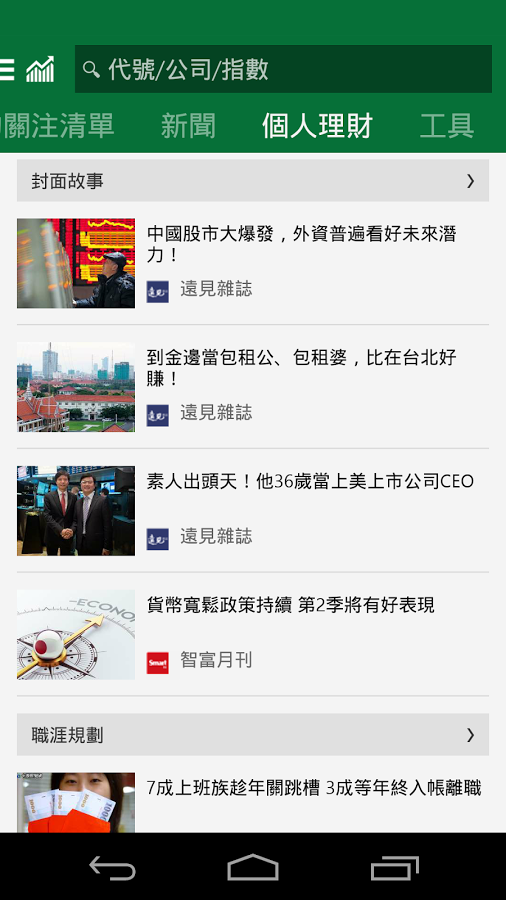 阅读由华尔街日报 (WSJ)丶CNBC丶路透社丶Fox Business丶华尔街日报丶CNBC丶Forbes丶Bloomberg丶Investopedia丶MarketWatch 等主要媒体来源所提供的商业丶金融丶市场丶科技丶公司丶小型企业丶个人理财丶储蓄与投资丶支出与借款丶信贷丶房地产丶保险丶税丶退休丶职业与教育丶热门股票丶预算规划等最新消息与建议。