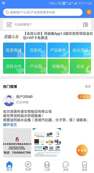 药融圈APP,在产业互联网+的风潮下,构建的生物医药生态社区,通过线上线下有机结合,打破医药行业上下游产业链之间信息交互不对称。链接服务,链接资源,链接企业,链接个人,是药融圈重塑医药社区生态的四大要素。是一款全维度医药行业的新社交app。