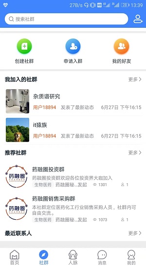自由添加业内用户为好友,可以创建社交群聊拓展行业人脉;