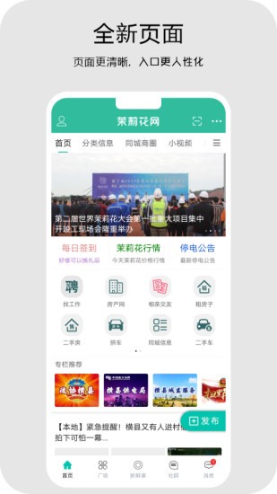 横县茉莉花网app是专为广西横县本地居民设计开发的一款本地综合生活服务软件,在这款软件上面,用户们可以享受到非常专业而且优质的服务,各种本地生活资讯应有尽有,不为人知的美食、永远不会踩雷的店铺、周末娱乐的好去处等等全部都有哦!