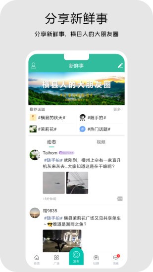 横县茉莉花网官方app就是“新横县”,本地人在这里可以进行各种交流,服务包括了生活中的大大小小的方面,也是本地人的驻扎地。线上拥有丰富的专区,有什么需求点进对应的专区即可,还可以自行搜索查找。线上的圈子可以分享自己的日常生活,欢迎有需要的朋友下载使用!