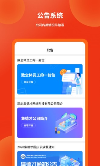 用于公司发布通知,发布后,所有人可见,保证消息及时准确送达 。