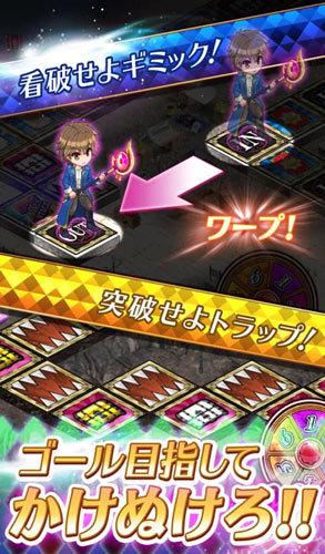 玩家在游戏中可以运用各种各样的技能,在走第一步时想想好第二步,一边考虑「什么时候发动技能」、「选择哪条路线比较好」等等一边向着终点进发。另外到达终点时转动“每次出牌给予的伤害都不同轮盘”就能跟敌人战斗。因为是每个出牌的伤害值都标明的游戏系统,所以简单明了之余又多了一份紧张感。来体验白热化的战斗乐趣吧!