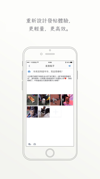 4、专为移动端而生发帖体验,一段文字、九张图片,分享你的美好数字生活;