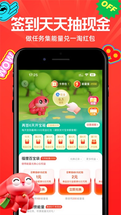 4、不止省钱还赚钱,每天签到领集分宝,集分宝绑定支付宝,支付时直接当钱花。