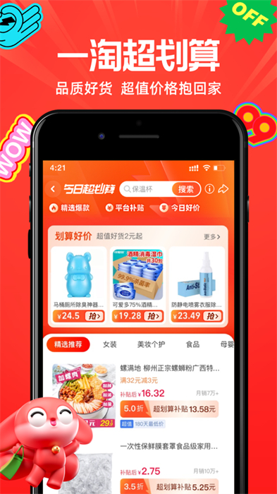 3、淘宝账号通用,无需单独注册;同步淘宝/天猫海量返利和优惠券商品。
