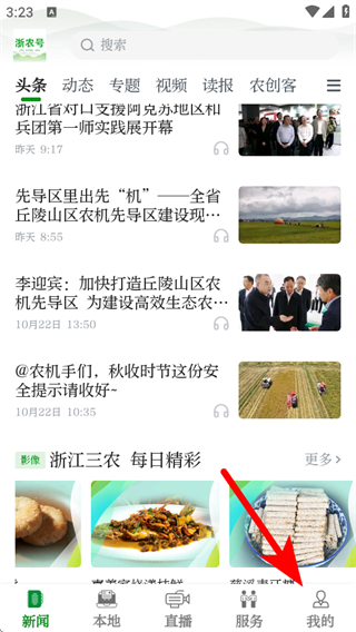 1、打开浙农号APP首页,点击底部我的,进入个人的页面。