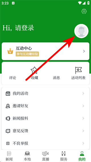 2、在个人的页面,需要点击头像的区域,进入验证登录界面。