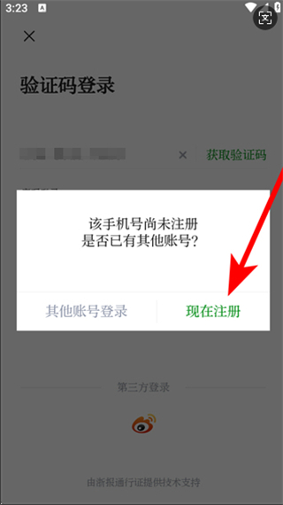 4、若手机号未注册,点击现在注册完成账号注册后登录。