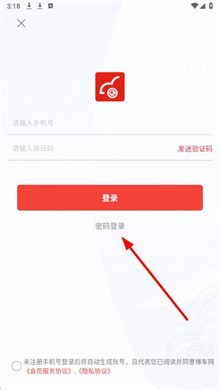 2、在登录界面中,选择密码登录选项,切换至密码登录页面。