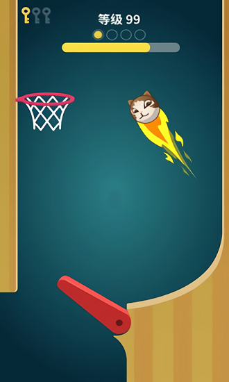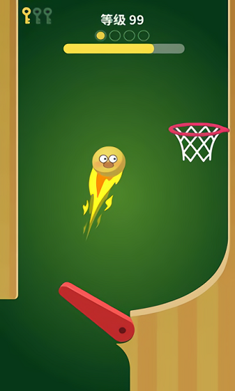 3、关卡种类非常丰富,每一关都是精心设计的,各式各样的障碍设置需要你去战胜,拉动弹射装置,将篮球击出去