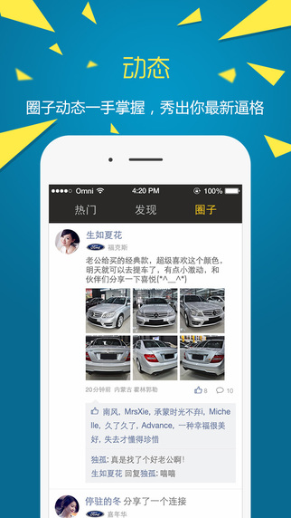 1.动态:圈子动态一手掌握,秀出你最新逼格。