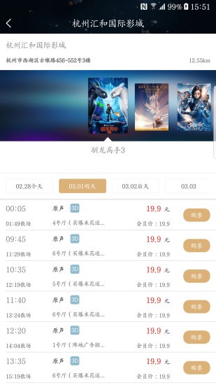 输入电影名称,能够快速了解到相关的电影院;