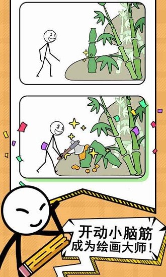 火柴人之奇葩画是一款益智类的手机游戏,游戏中会出现非常多的谜题让你去解开,你需要开动你的脑筋去思考,并画出能够解开谜题的物品,游戏的关卡很多,每一关的思路都不一样,都能给你眼前一亮的感受,你还在等什么呢,快点下载体验吧!