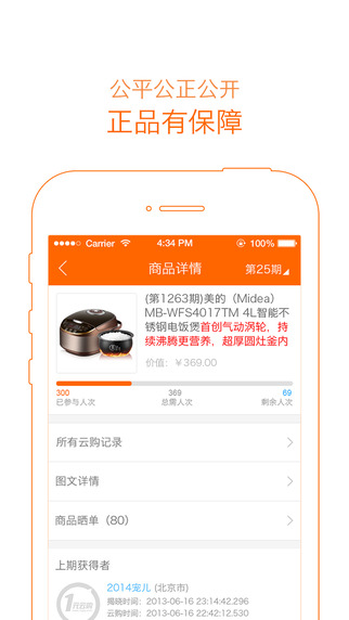 3、当一件商品所有“等份”全部售出后计算出“幸运云购码”,拥有“幸运云购码”者即可获得此商品。