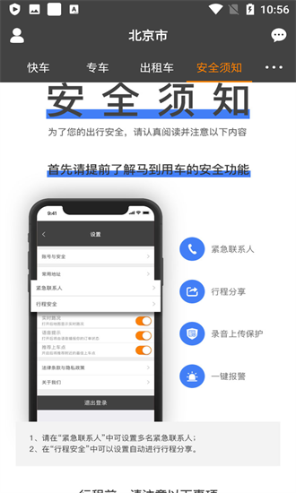 马到用车是特别好用的手机软件,它覆盖了日常生活中的打车场景,能够让你享受到快捷出行的便利,具有快车、专车、出租车等多种服务车型,你可以按需选择,同时有详细的安全须知,提高乘客的安全意识同时了解软件的全面使用细节、为你的安全保驾护航,快来下载吧!