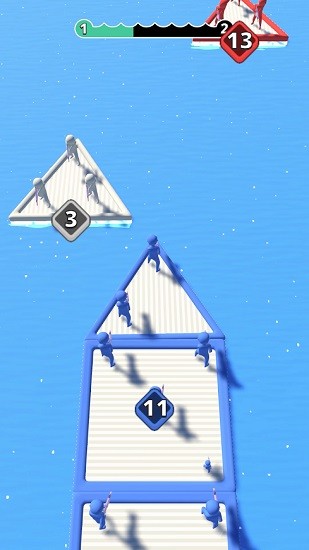 木筏冲刺是一款关卡非常丰富的休闲闯关游戏,在海面上收集更多的木筏并且这些木筏上会有小人存在,当你收集到足够的小人就能到达终点和关卡之中的boss进行对抗了,只有顺利的收集到更多的小人才会有战争最终boss的可能性,轻松愉快的背景音乐也能给你快乐的时光。