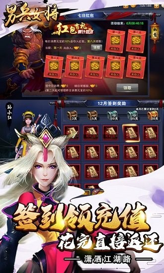 男兵女将变态版全新的变态福利版本,登录游戏即可免费领取丰厚的游戏奖励与各种游戏特权,在保留了游戏所有玩法的同时,还新增了专属的GM游戏商城,玩家只需花费一元就能将商城道具统统带回家,非常的好玩刺激,感兴趣的小伙伴一定不要错过了哦!