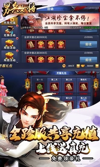 2、版本新增共享充值,所有区服共享,免费领超多真充卡与海量奖励!