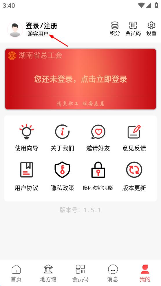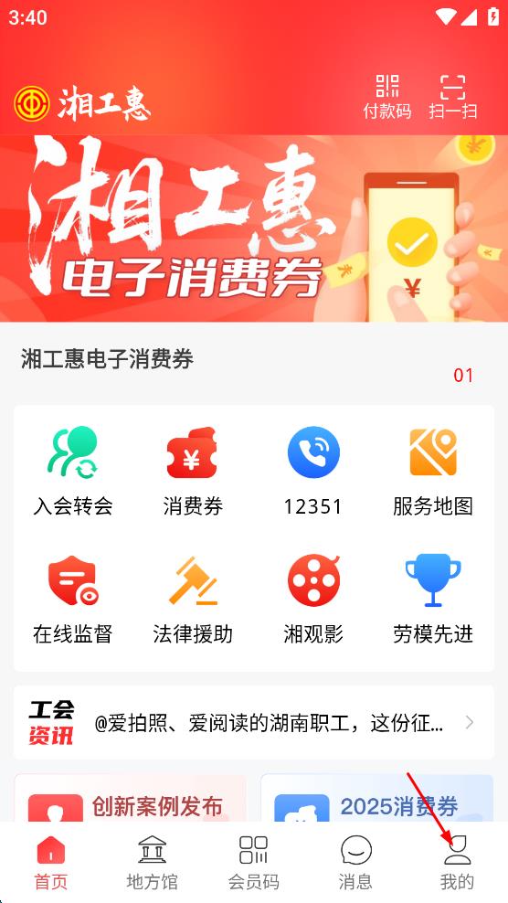 1、打开湘工惠APP,进入首页后,找到页面右下角的“我的”选项,点击该选项,进入个人页面。