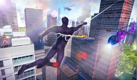 3、在这里玩家将可以亲自化身成为和蜘蛛侠一样的绳索英雄来保卫城市,宽阔无比的城市等着你来探索精彩刺激的对战充满等你来体验