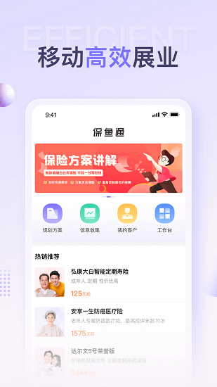 保鱼通:中国保险行业的移动办公展业工具。在家里、在咖啡厅,都能快速便捷的开展业务工作,分享攻略知识,快速制作方案计划书,为客户展示各类保险内容。全方位保险展业,助你快速签单。
