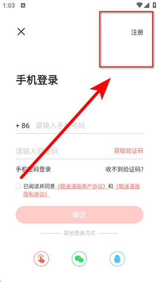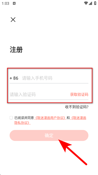 4、在注册界面填写手机号码、验证码,勾选同意相关协议后点击确定,完成账号注册。