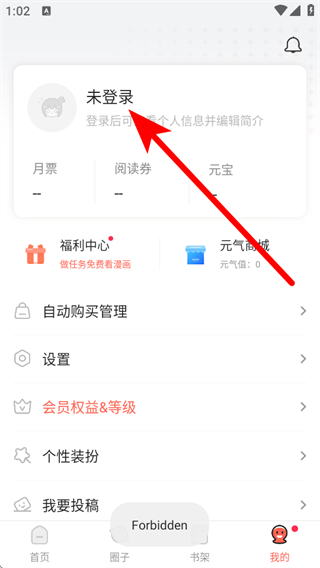 1、打开耽迷漫画APP,点击右下角我的,进入个人页面。