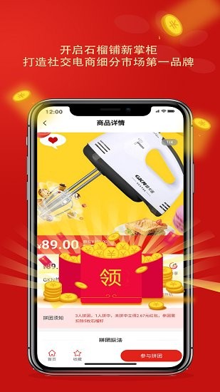石榴铺是一款全新上线的团购软件,在这里不仅有海量优质商品更有实惠的价格以及各种大额优惠活动等你来参与,最重要的是支持团购拼单更加便宜,各种优惠券以及减免还有大转盘秒杀活动等等让你买到就是赚到。喜欢的朋友赶紧来下载吧!