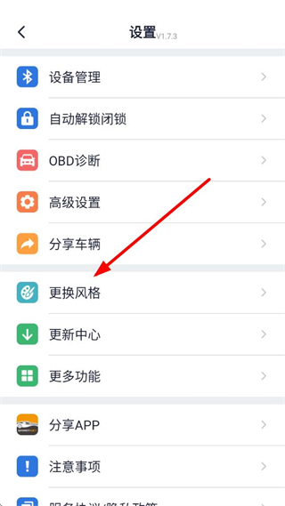 2、在设置界面,点击更换风格选项,进入风格设置页面。