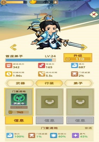 卡通q版风格的武侠大闯关游戏,收集各种强力武器装备,挑战天下各大江湖门派,,高度还原的武侠角色,具备不同的武学功法,展开一段前所未有的门派冲关挑战,向着顶级的大侠不断奋斗。