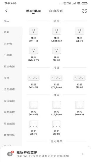 2、丰富的设备分类,包括电工、大家电、厨房电器、安防传输等,随时了解管理。