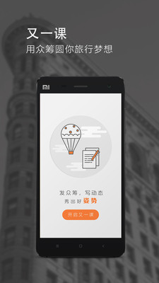 又一课是一款为年轻人提供一个触摸梦想的机会,让你发布自己的旅行方案,展示自己的风采与特长,准备你的筹划方案让成功旅行,圆自己的梦想,让自己的生活更精彩!