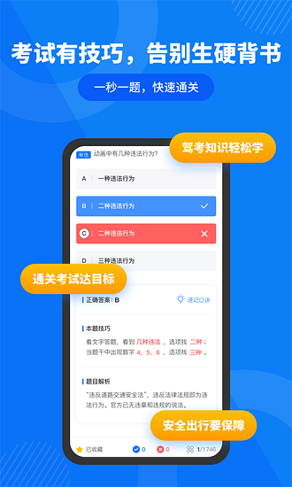 3、用户实时在线学习最全的驾考知识更加的全面,了解不一样的驾考知识更加的多元化。