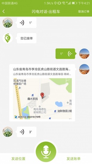 支持用户与司机进行语音沟通,无需手动打字,提供便捷的交流服务。