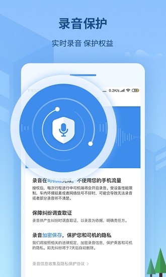 4、全程录音,软件可以自动开启录音功能,全程保护乘客的安全,随时加密保存录音。